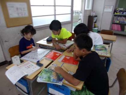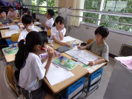 「がみがみ」「くすくす」など、様子を表すことばを使って、文を作っていました。