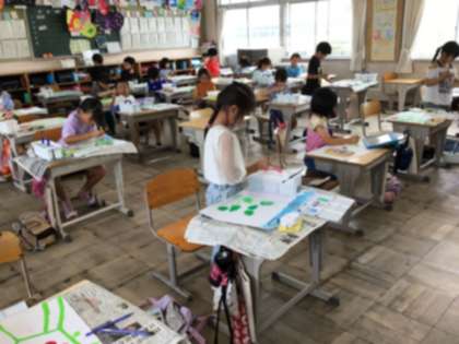 鉢で育てている野菜の絵の色ぬりをしました。2年生は自由応募に出品する予定です。