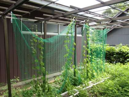 まだ梅雨明け前ですが、結構大きく育っています。ツルレイシとは、ゴーヤのことです。