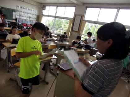 英語で自己紹介をするという内容の「Speaking Test」でした。教科担任の先生と練習してから、ALTの先生とテストをしていました、