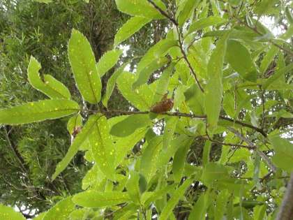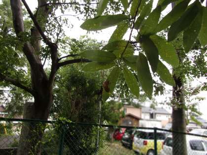 どんぐりの葉に、セミの抜け殻がありました。決して、「強い」といえるほどの葉でなく、ちょっとした風で、かなり揺れそうです。きっと、何らかの理由はあるんでしょうが、こんなところで羽化したんですね。驚きです。