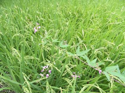 田んぼを見に行くと、稲に紛れて、何やらピンク色の花が…。よく見ると、ビオトープ内のあちこちで花が咲いているのが、見られました。