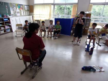 交流の準備として、自己紹介の練習をしていました。