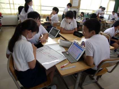 数直線を使わずに、公倍数を見つける方法を、グループで考えていました。