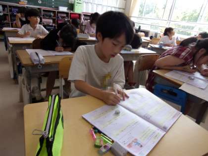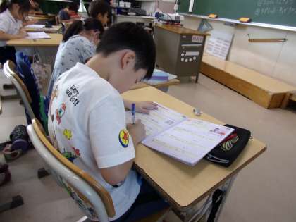 問題練習をしていました。問題に合わせて、余りをどう処理していくか、じっくり考えていました。