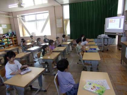 学習のスタートに、デジタル教科書で、ひと通り、お話を聞いていました。
