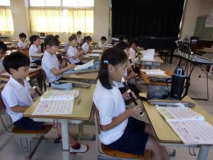 リコーダーの練習をしていました。半年間のリコーダー学習の総決算になるのでしょう。もう、3年生になって、そんなに経つんですね。