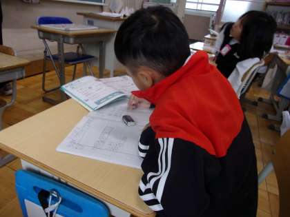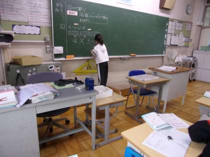 「4個の3つ分」について、かけ算の式を立てる方法を学習していました。