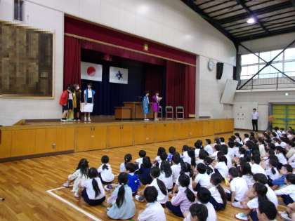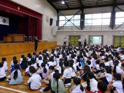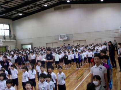 昨日行った「前後期区切りの会」の様子です。2,4,6年生の意見発表や生活運営委員会によるスポーツフェスティバルのスローガンの発表などがありました。最後には、校歌を元気よく歌いました。