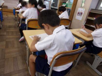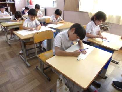 点と点をつないで、形を描いていました。10日ほど前の授業の様子です。