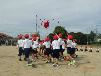 続いては、玉入れです。スタートは3年生でした。2回戦行い、赤1勝、白1勝でした。