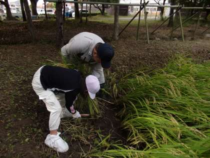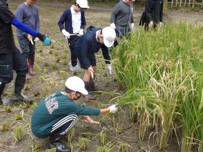 やはり、5年生です。5年生は、2年生の時以来ですが、今回が2回目の稲刈り。2年生より多めに稲を刈り取ることになりました。