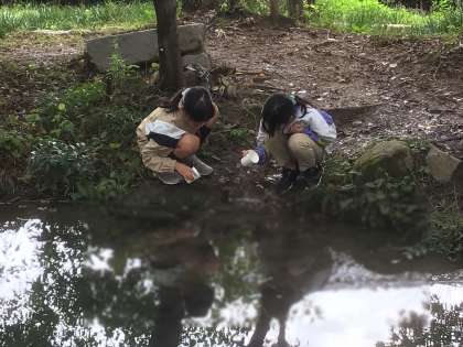 5年理科&4年総合的な学習「メダカ引継ぎおよび放流」その3