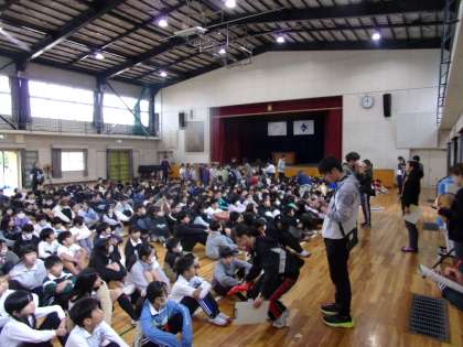避難訓練は、子どもたちだけの訓練ではなく、先生たちにとっても、大切な訓練です。この日は、行方不明の児童が出た設定で、捜索・救出する訓練も行いました。