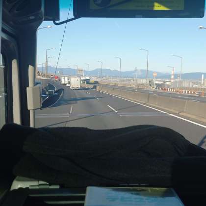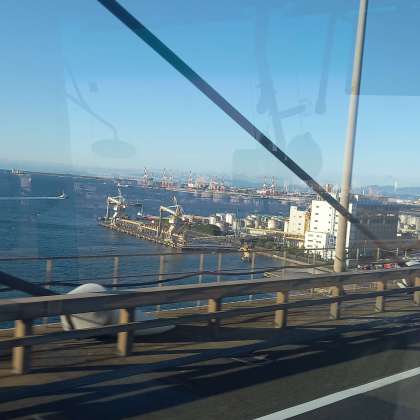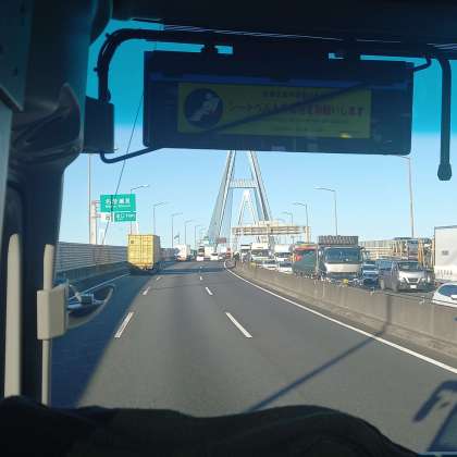 高速道路に乗りました。冷え込んだだけあって、名港トリトンから、遠くの山々や海がきれいに見えました。