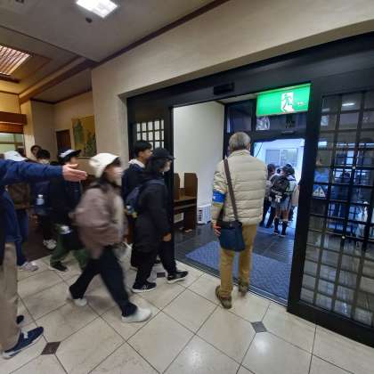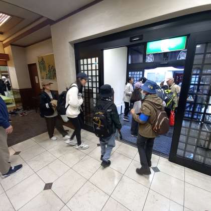 今日半日お世話になるボランティアさんと出会い、旅館を出発しました。ボランティアの皆様、どうぞよろしくお願いします。