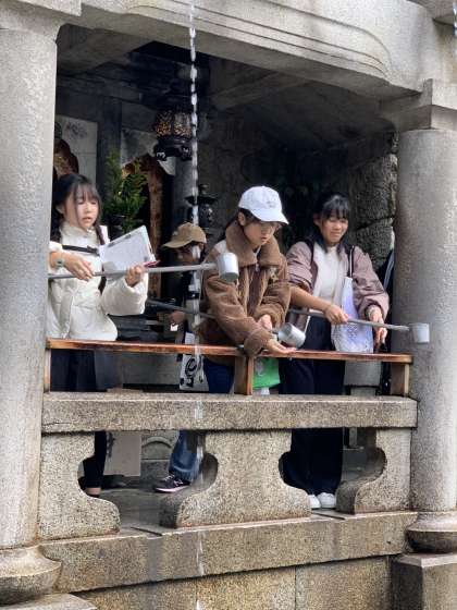 音羽の滝、結構並んでいましたが、頑張って並んで水を飲んだ班もありました。