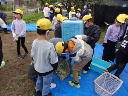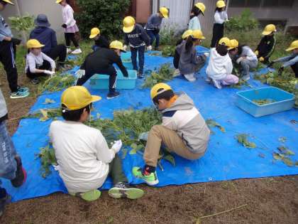 畑から運び出し、ブルーシートの上で、1つ1つ茎から外していきます。