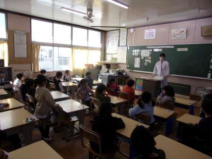 11月7日(木)、栄養教諭の先生にお越しいただき、食育の学習を行いました。この日の給食に使われている食べ物について、どんな働きがあるのかを学びました。