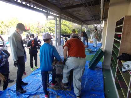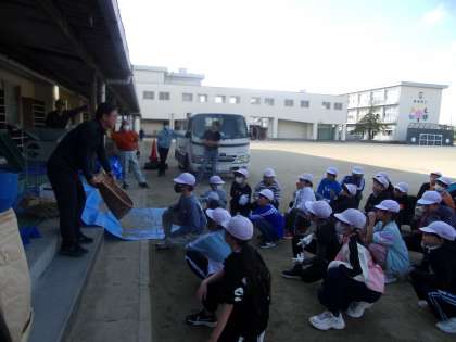 11月12日(火)、10月の稲刈りで刈り取った稲を、5年生が脱穀しました。