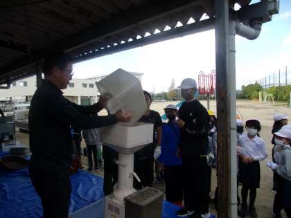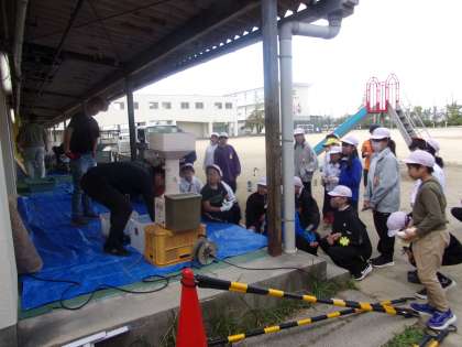 脱穀したお米は、ごみを風で取り除き、籾摺りして精米しました。