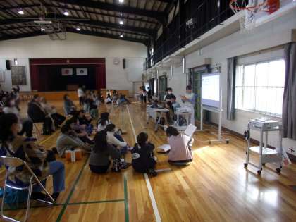 3組の様子です。発表が終わってからは、見ている子たちや保護者の方々から、質問や意見をもらいました。多くの保護者の方にご発言いただきました。子どもたちの励みになることと思います。ありがとうございました。