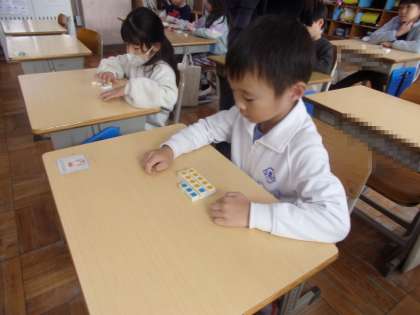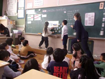 「13−9」を計算しようとすると、3から9を引くの?…ということになってきます。どうすればよいかをみんなで考えました。先週、12月4日(水)の授業です。授業研究として行いましたので、多くの教職員が参観しています。