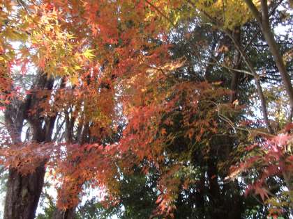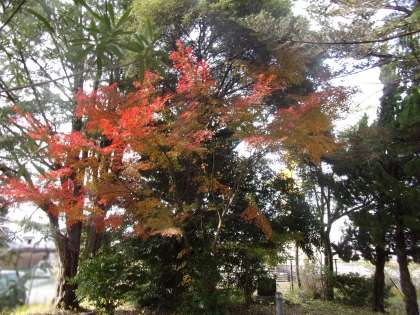 プール横、色づきが遅い方のもみじの様子です。