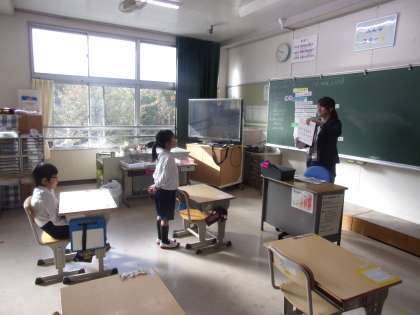 サツマイモ屋さんを開くにあたり、自分の役割の練習をしました。先週、12月5日(水)に授業研究として行いました。