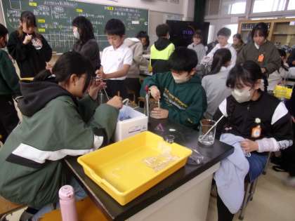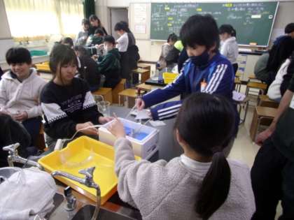 食塩やミョウバンが、水にもう溶けない…となったとき、どうするともっと溶けるでしょうか?水の量を増やしたり、温度を上げたりしながら、実験して調べていました。