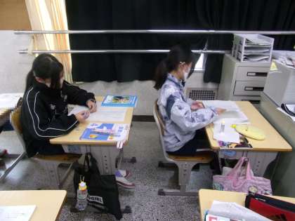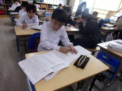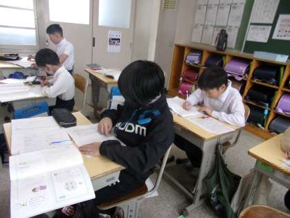 「はじめ」と「終わり」を工夫しながら、原稿を作り、みんなに伝えたい出来事を伝えます。この日(11日 水曜日)は、一生懸命、原稿を書いていました。