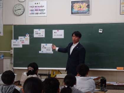 「夢先生」は、クラスごとに、一人ずつ入ってくださいました。これらは、2組の写真です。