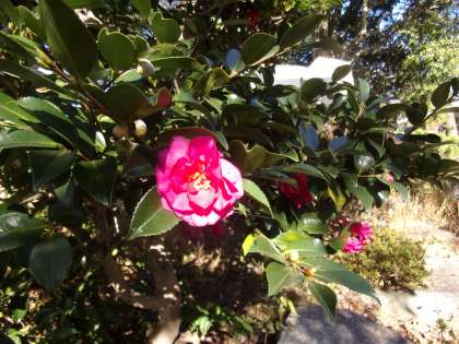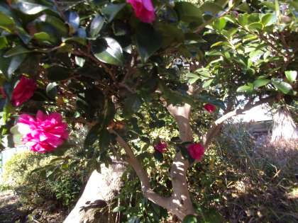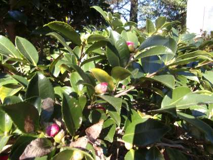 サザンカの花がだんだん咲いてきました。つぼみもたくさん見られます。そろそろサザンカの開花期を迎えそうです。