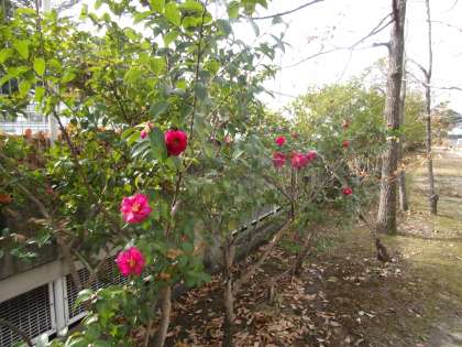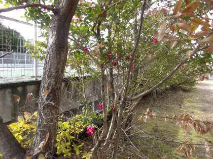 プール横のサザンカが、どんどん咲き始めました。ピンクが鮮やかです、