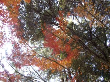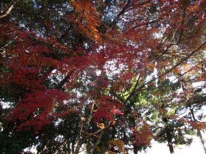 校内のほとんどのもみじは、もうすぐ、完全に落葉しそうです。しかしながら、この1本だけは、いくらか葉が落ちてきてはいますが、まだ、この姿です。もしかすると、年を越せてしまうかもしれません。