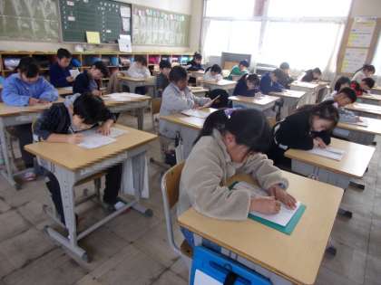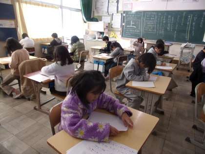 2年生、3組および4組の様子です。2年目の書き初め大会、きっと、みんな、去年より上手に書けたのではないでしょうか。