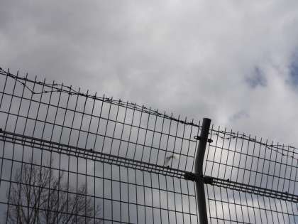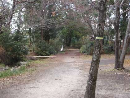 ビオトープ内で、鷺(さぎ)だと思われる鳥を見つけました。そっと距離を詰めながら、写真を撮りましたが、2枚目の写真の直後、3枚目の写真のように、空に逃げられてしましました(わかりにくいですが、フェンスの向こうに飛んでいる姿が写ってはいます)。