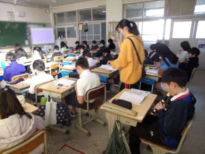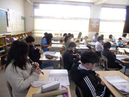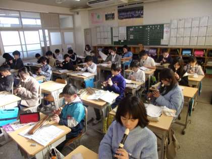 教室で、リコーダー練習をしていました。「オーラリー」は、CMで使われることも多い曲です。高い音を上手に演奏できるかがポイントだと思います。