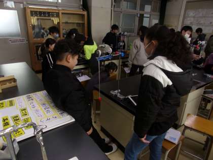 ふりこが1往復する時間は、どんな条件で変わるのでしょうか?ふりこの長さ、おもりの重さ、振れ幅の3つについて、予想を立て、実験していました。