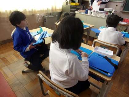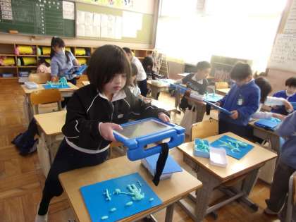 だんだんとできあがってきた時の写真です。できあがった作品を学習用タブレットで撮影し、記録していました。