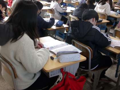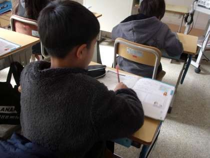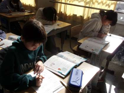 第二次性徴について、学習していました。教科書を調べながら、学習シートに記入しています。