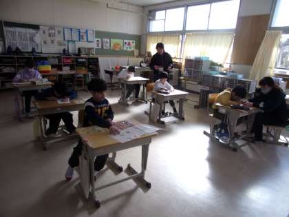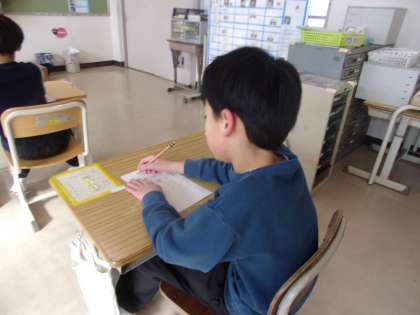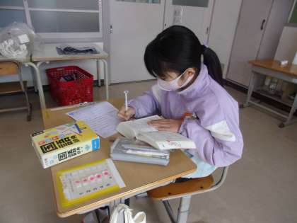 それぞれの実情や事情に応じて、見出しの3教科のいずれかの学習を進めていました。みんな集中して取り組めていました。
