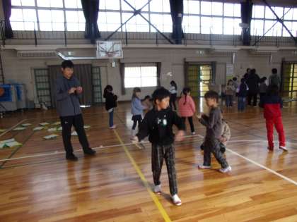 こま回しです。簡単ではないですが、回せるようになる子も結構いました。