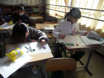 版画の下絵を描いていました。21日(火)の授業です。