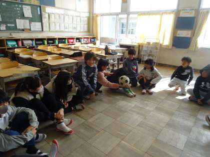 遊んでいるときの様子です。ボーリング、5W1H、ビンゴ、爆弾ゲームなど、いろいろな遊びを行っていました。