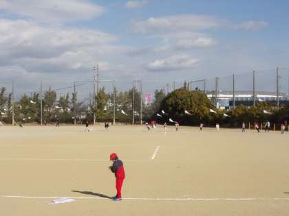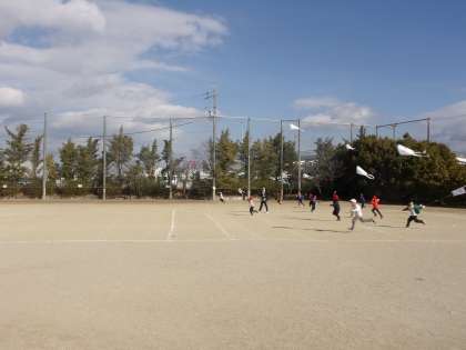 1月29日(水)に行われた凧あげの様子です。風が強い日で、よくあがりましたが、危うく風に飛ばされそうになる時もありました。
