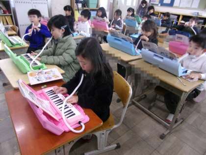 鍵盤ハーモニカの演奏をしていました。一昨日の授業の様子です。