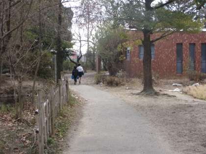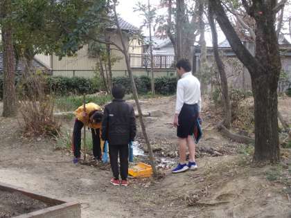 7日(金)、ビオトープを見ていると数人の人影が…。近づいて、話を聞くと、学習発表会に向けて、このグループでは、自分たちが活動してきたことを再現して撮影しているとのことでした。