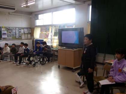 2月6日(木)に行われた、6,7,8,9組学習発表会の様子です。まずは、自己紹介を兼ねた〇×クイズから始まり、続いて、6,7,8,9組でこれまでに行ってきた活動の発表を行いました。