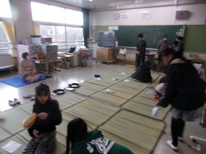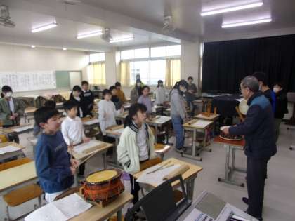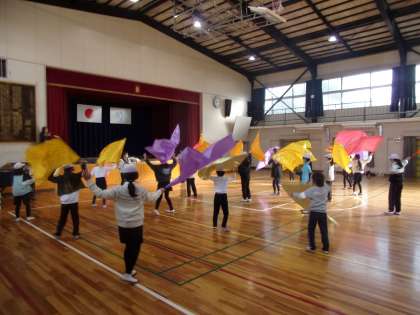 カラーガードクラブ、ちゃらぼこ太鼓クラブ、茶道クラブの様子です。これらのクラブでは、講師の方々に1年間ご指導いただきました。